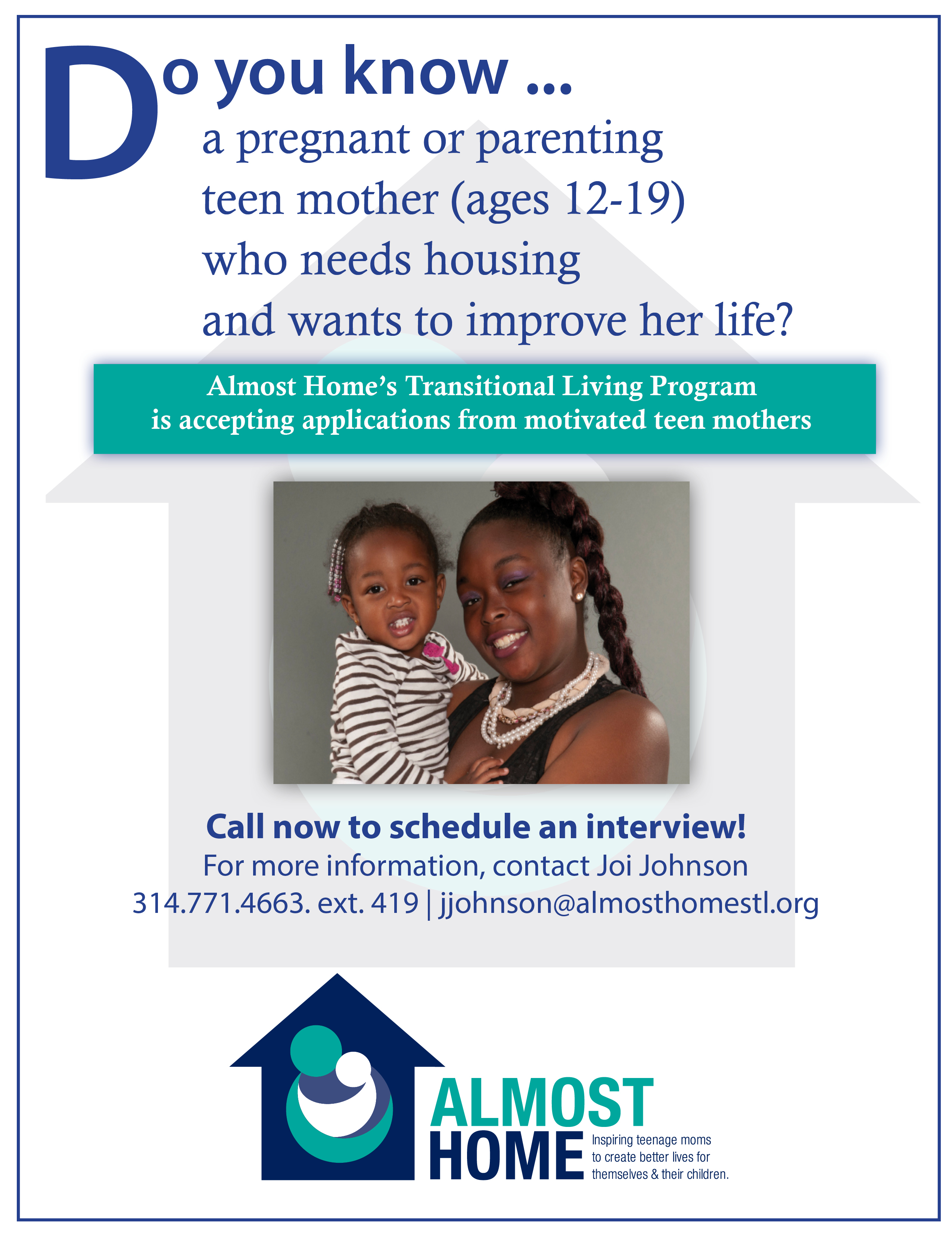 Almost Home provides a safe, structured, compassionate environment for teenage moms to live while they learn how to become great parents and successful adults.