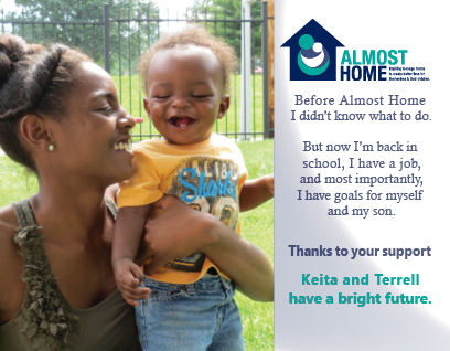 Tyiesha was a “couch surfer.” When she came to Almost Home she had been living from house to house to house with her young daughter, Shyla. After a week with a friend or a couple of weeks with relatives, or a month with a boyfriend, it was clear that they were no longer able to live in these overcrowded conditions, tapping into the generosity of friends or overstaying their welcome as relatives. She and Shyla, an active toddler, were simply not wanted. After all, Tyiesha had dropped out of high school, was unmotivated to do much with her life, and was not really working on changing any aspect of the way things were. Like so many teenage mothers at Almost Home, she lived from day to day – not thinking about what she would do five years or even one year from now, and having no belief that a future was possible. After two years at Almost Home, Tyiesha finished high school, completed training as a Certified Nurse’s Assistant, and got a job at a local senior living facility. No longer at Almost Home, Tyiesha and Shyla are now followed in Almost Home’s Aftercare Program which provides resources, counseling, and even life skills classes to former residents. She has her own apartment and credits Almost Home with making the biggest difference in her life. “It was hard because I didn’t want to do anything, but they helped me believe in myself,” reports Tyiesha. “Now Shyla and I can look ahead with hope and pride in what we’ve overcome.” The next step for Tyiesha is the pursuit of a registered nursing degree – and somehow we think she’s going to make it.